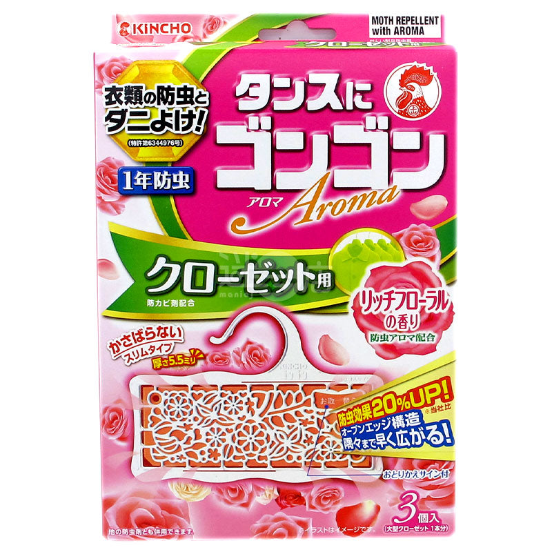 豊かなフローラルの香りのKINCHO ワードローブ用芳香虫よけタブレット