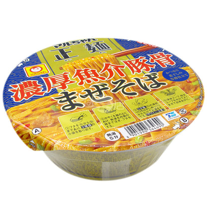 麺類(小麦粉、でん粉、食塩、こんにゃく、大豆ファイバー、植物たん白、植物油脂)、調味料(植物油脂、醤油、ラード、ポークエキス、デキストリン、魚介エキス、砂糖、調味油、酢、食塩、辛味調味料) 、野菜パウダー、具材(味付豚肉、干したけのこ、ねぎ)、加工でん粉、調味料(アミノ酸等)、食塩、レシチン、カラメル色素、炭酸カルシウム、アルコール、酸化防止剤(ビタミンC、ビタミンE) 、酸味料、香料、クチナシ色素、増粘多糖類、ビタミンB2、ビタミンB1、香辛料抽出物、(小麦、乳成分、大豆、豚肉、ゼラチン成分を含む)