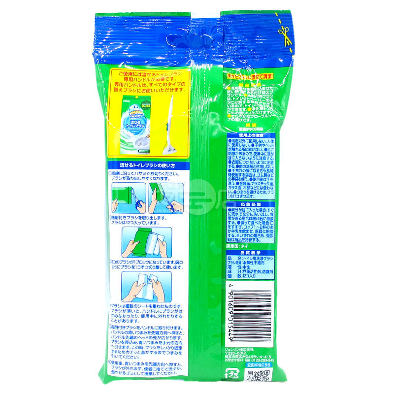 内容量: 附帶清潔劑的清潔刷頭12個; 附帶濃縮清潔劑的即棄式馬桶刷,刷頭採用像衛生紙一樣可分解的材料,配合手柄支架一起使用 (另外發售) ,可以在不弄髒雙手的情況下清潔馬桶,清洗後一觸即可丟進馬桶沖走,非常輕鬆方便!