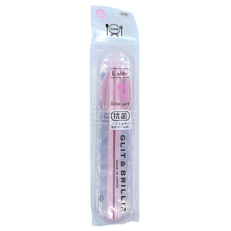 G&B 日本製抗菌餐具套裝 筷叉匙附盒 粉紅色