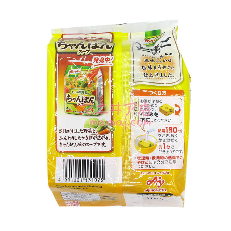 雞蛋,鹽,澱粉,食用油脂,還原澱粉糖漿,香菇,醬油,蛋白質水解物,胡椒,木魚提取物,酵母提取物,雞肉提取物,海帯提取物,鰹魚提取物,發酵調味料,蛤蜊提取物,洋蔥提取物, 配料(香菇,裙帶菜,蔥),山梨糖醇,加工澱粉,調味料(氨基酸等),增稠劑(黃原膠),酸味劑,胡蘿蔔素色素