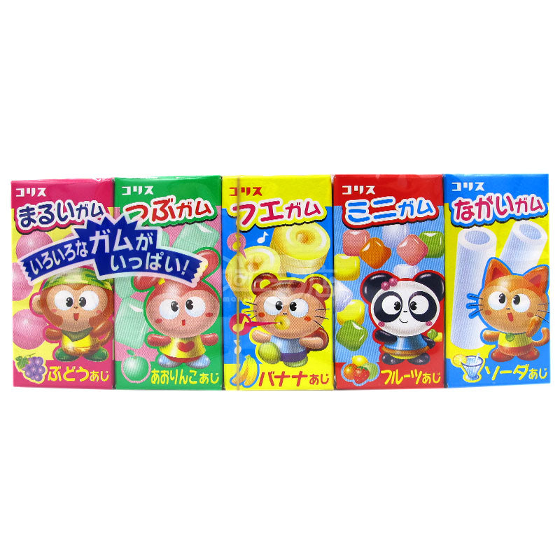 5種形狀,5種口味(葡萄,青蘋果,香蕉,水果,梳打)的香口膠。