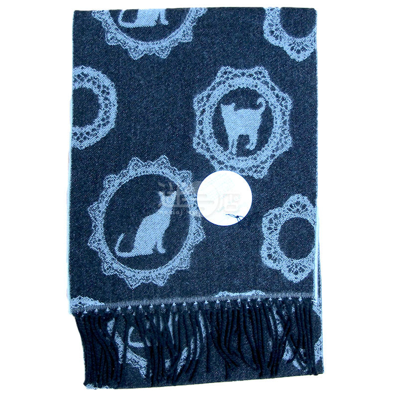 貓貓圖案觸感柔軟圍巾 日本製 黑色