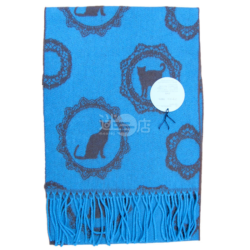 貓貓圖案觸感柔軟圍巾 日本製 綠松色