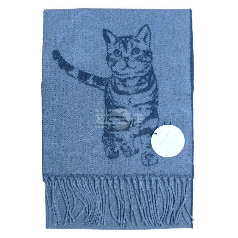貓貓圖案觸感柔軟圍巾 日本製 灰色