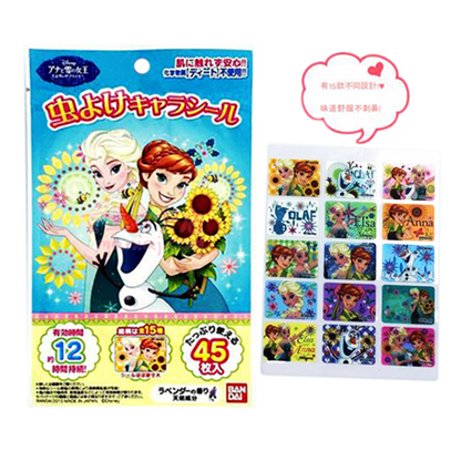 超可愛設計!!是女生必愛的冰雪奇緣!精美得像貼紙一樣!將驅蚊蟲貼貼在最接近外露肌膚衣角或褲角,天然的薰衣草香精油就會發揮功效,令蚊蟲不敢靠近。