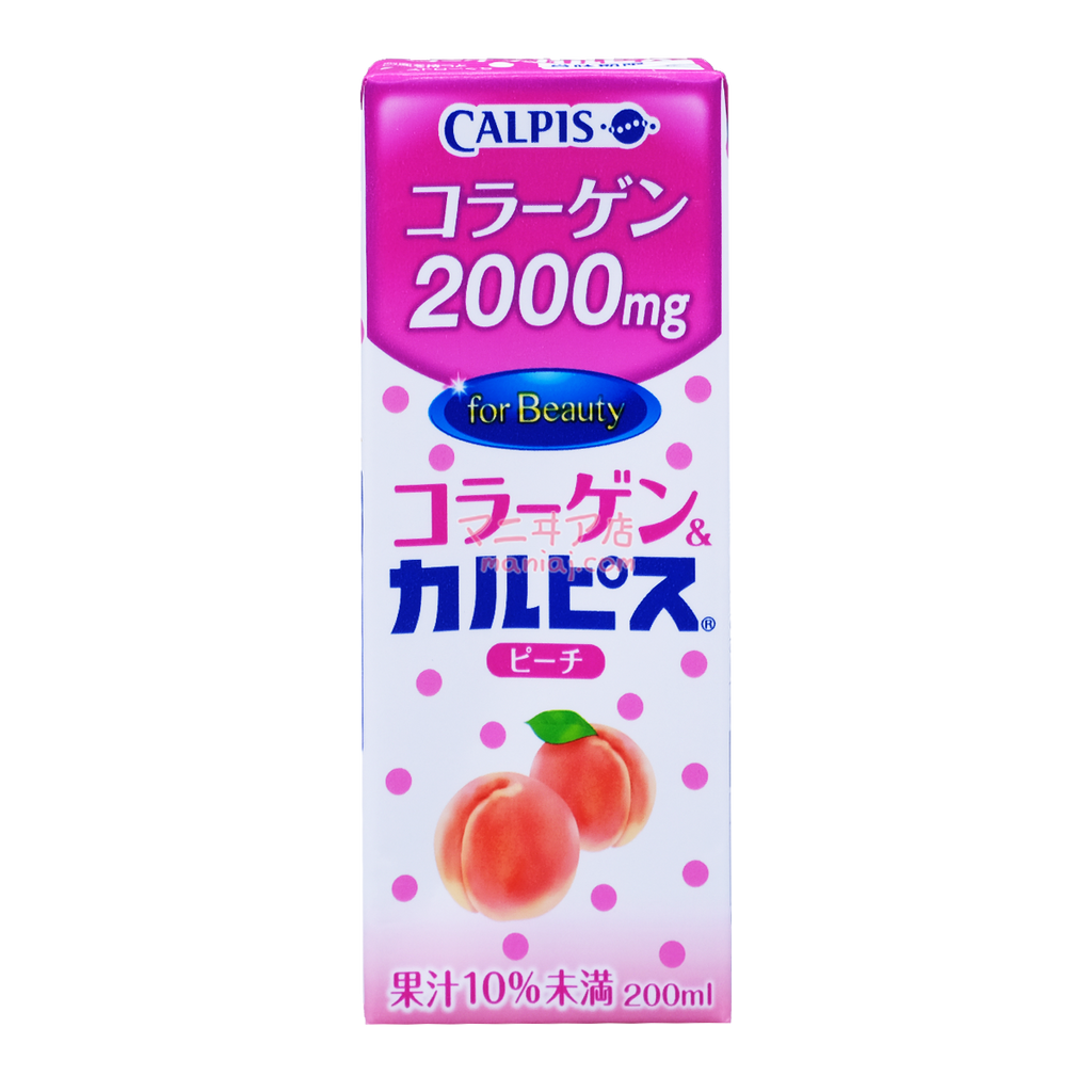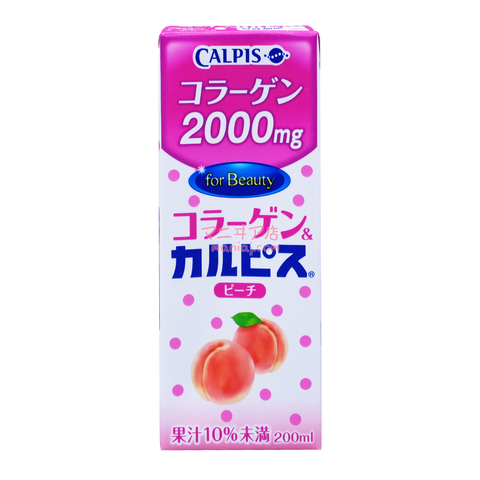 "在可爾必思中加入桃的果汁,有甜甜酸酸風味。含2000mg的骨膠原。内容量:200ml"