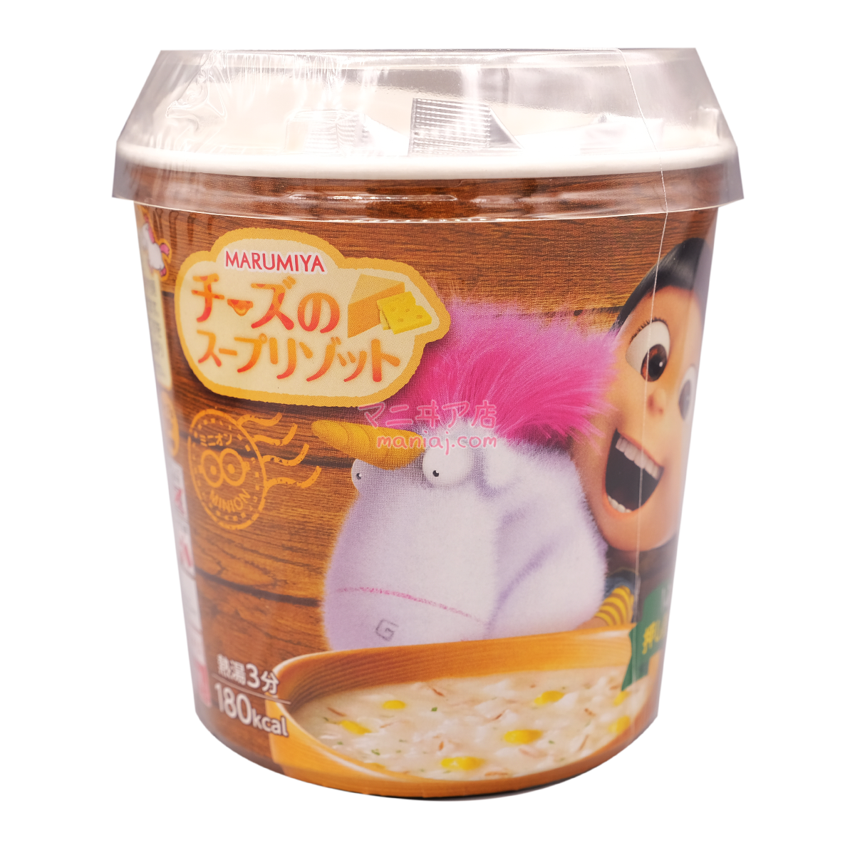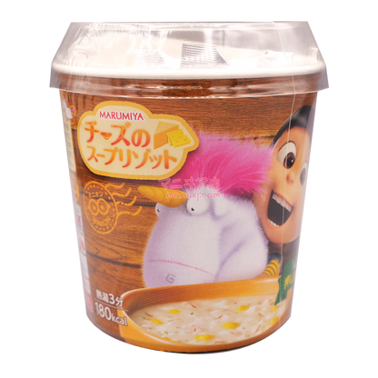 "用融化了的芝士和馬鈴薯製成香濃美味的意大利飯。包裝是可愛的黃色迷你兵團,配料有粟米。