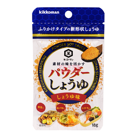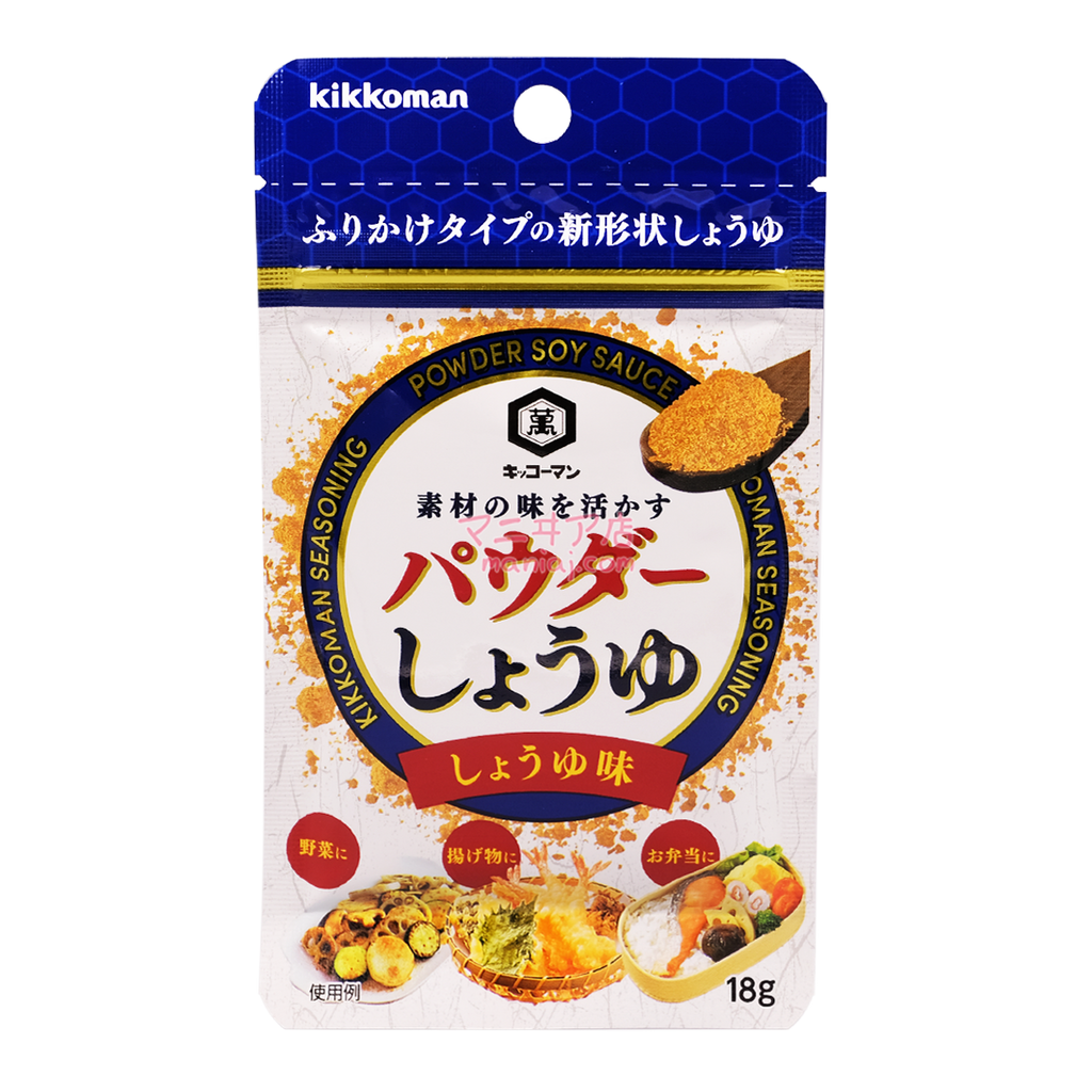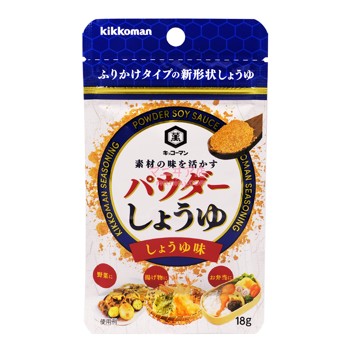 "本身醬油是液體狀,經凝縮後變成了粉末狀。可以配合各種料理,味道一流,而且發揮出素材的味道,容易保存。内容量:18g"