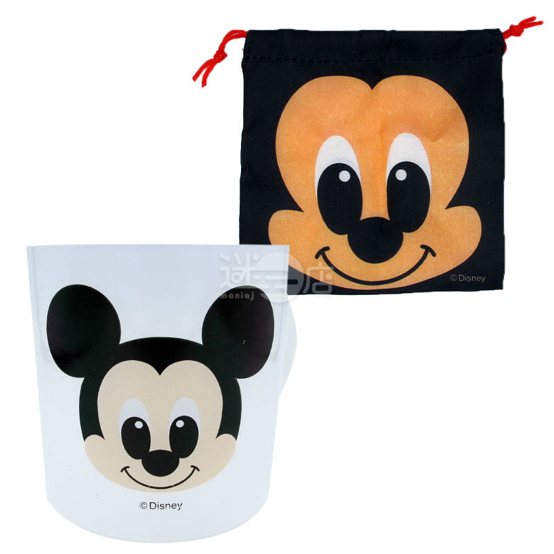 帶有迪士尼角色的水杯和拉繩袋仔。附帶的袋仔尺寸可容納帶手柄的杯子,共有16款卡通,隨機發貨。