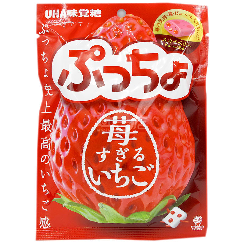 澱粉糖漿,糖,植物性加工油脂,明膠,草莓,果糖葡萄糖液糖,無菌乳酸飲料,草莓種子,草莓醬,植物油,甜味劑(山梨糖醇),酸味劑,膠凝劑(阿拉伯膠),乳化劑, 色素(紫色胡蘿蔔,紅色40號),香料,上光劑,防腐劑(焦亞硫酸鈉)