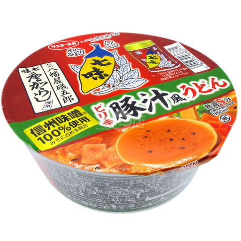 使用100%的信州味噌,再加上豬肉提取物,魚和香菇湯,為蔬菜增添了美味。辛辣的豬肉烏冬面,非常適合秋冬季食用,帶有辛辣的辣椒和清爽的風味。