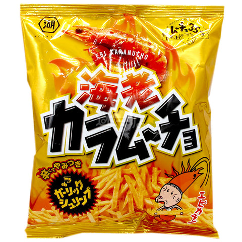 馬鈴薯(非轉基因),植物油,葡萄糖,鹽,糖,香辣調料,蝦提取物粉,磷蝦提取物粉(包括明膠),蛋白水解物(包括大豆),糊精,粉狀醬油(包括小麥・大豆),酵母提取物粉,檸檬汁粉,低聚醣,調味油(包括小麥・大豆),黃油粉(包括乳成分),調味料(氨基酸),香料(蝦和大豆由来), 辣椒粉色素,香辣調料提取物,酸味劑