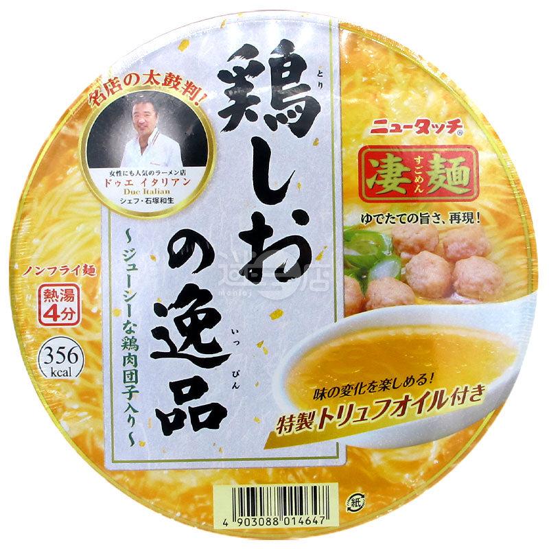 麵條(麵粉,鹽,大豆膳食纖維),湯(發酵調味料,鹽,動物油脂,植物油脂,糖,雞肉提取物,食用香料油(大米油,松露),酵母提取物,香辣調料,蛋白質水解物 ,洋蔥提取物),配料(雞肉丸,大蔥,紅辣椒),加工澱粉,調味料(氨基酸等),酒精,鹹水,抗氧化劑(維生素E,維生素C),焦糖色素,香料,梔子色素