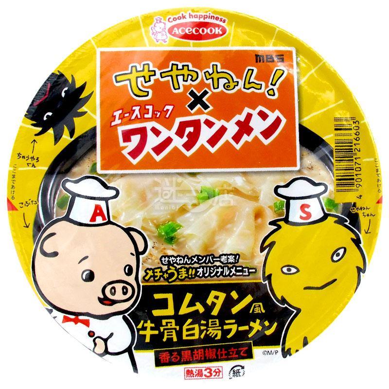 麵條(小麥粉,植物油脂,鹽,醬油,糖),配料(雲呑,芝麻,大蔥),湯(鹽,乳化油脂,豬肉調味料,糖,香辣調料,豬肉提取物,牛肉調味料 ,調味料,蛋白質水解物,洋蔥粉),加工澱粉,調味料(氨基酸等),碳酸鈣,鹹水,香料,細二氧化矽,抗氧化劑(維生素E),焦糖色素,維生素B2, 維生素B1,香辣調料提取物,(包括小麥,乳,牛肉,芝麻,大豆,雞肉,豬肉成分)