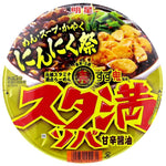 湯(醬油,豬油,鹽,豬肉提取物,蛋白水解物,香辣調料(大蒜,薑,胡椒) ),香味油,香味調味料,糖,植物油,發酵調味料),配料(炸大蒜,椰菜,調味豬肉,紅辣椒,韭菜),加工澱粉,焦糖色素,調味料(氨基酸等), 碳酸鎂,碳酸鈣,增稠多醣,鹼水,香料,乳化劑,酒精,酸味劑,抗氧化劑(維生素E),類胡蘿蔔素色素,香辣調料提取物,維生素B2,維生素B1,(包括雞蛋、乳製品、小麥、蝦、芝麻、鯖魚、大豆、雞肉、豬肉、明膠成分)