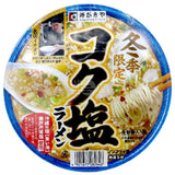 以豬骨和雞骨製成清湯底,再加入大量背脂,是適合在冬天吃的熱辣辣鹽拉麵。