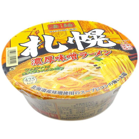 湯(味噌,動物油,鹽,蛋白水解物,糊狀大蒜,糖,豬肉提取物,糊狀洋蔥,糊狀生薑,加工油脂,豆渣粉末,烤洋蔥粉末,香味油,調味油,香辣調料),麵條(小麥粉,鹽,大豆膳食纖維),配料(豆芽菜,胡蘿蔔,粟米,大蔥,鹽),加工澱粉,調味料(氨基酸等),鹼水,焦糖色素,香料,增稠多醣,海藻糖,酒精,酸味劑,抗氧化劑(維生素E,維生素C),乳酸鈣,梔子色素,甜味劑(三氯蔗糖),(包括乳製品,小麥,芝麻,大豆,雞肉和豬肉成分)