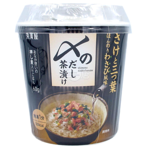 鰹魚湯中加入少許芥末,回味清爽。配料有三文魚和三葉,只需加入熱水等一分鐘即可享用。