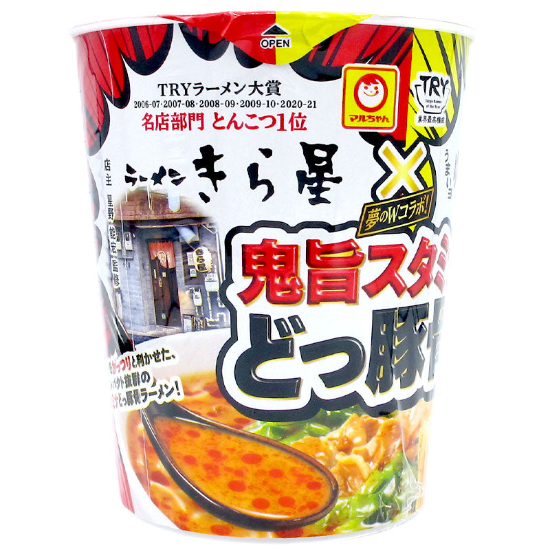由拉麵店「きら星」和「うまいヨゆうちゃん」合作出品的鬼旨耐力豚骨拉麵。内容量:100g