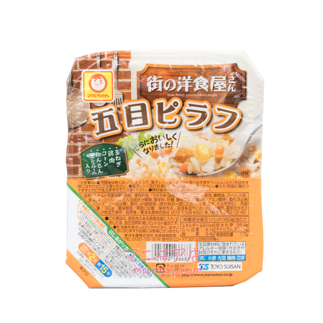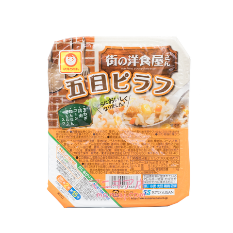 西式簡餐, 可以是零食,也可以是主食的五目炒飯, 包含了洋蔥,玉米,蘿蔔和蘑菇。除了可以在微波爐中加熱,也可以用熱水加熱約15分鐘。