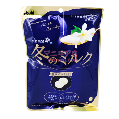 "加入北海道產的忌廉,在濃厚的牛奶裡加入雲呢拿芳醇香味,形成高級的味道。為了實現入口即溶的感覺,素材的配合上亦下了一番工夫。包裝以深色背景襯托著金色的商品名,浮現高級感。容量:80g(獨立包裝)"