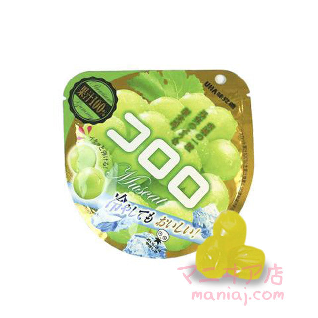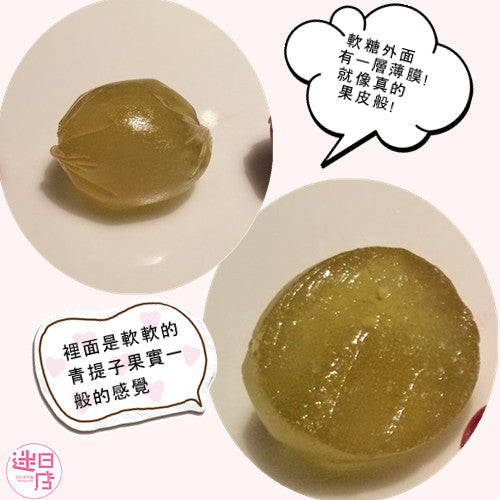 被包裹的軟糖水汁被封鎖在裡面,軟糖外面有一層薄膜包裹,裡面是軟軟的青提子果實一般的感覺,就像在吃青提子一樣!